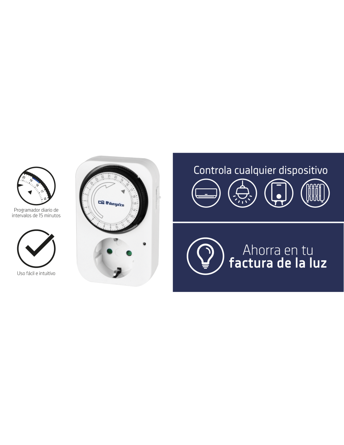 Con el programador analógico Orbegozo PG 02, podrás programar el aparato que desees para que funcione durante el horario seleccionado. Cada hora se compone de 4 pestañas lo cual significa que el tiempo mínimo de funcionamiento con el programador es de 15 minutos.