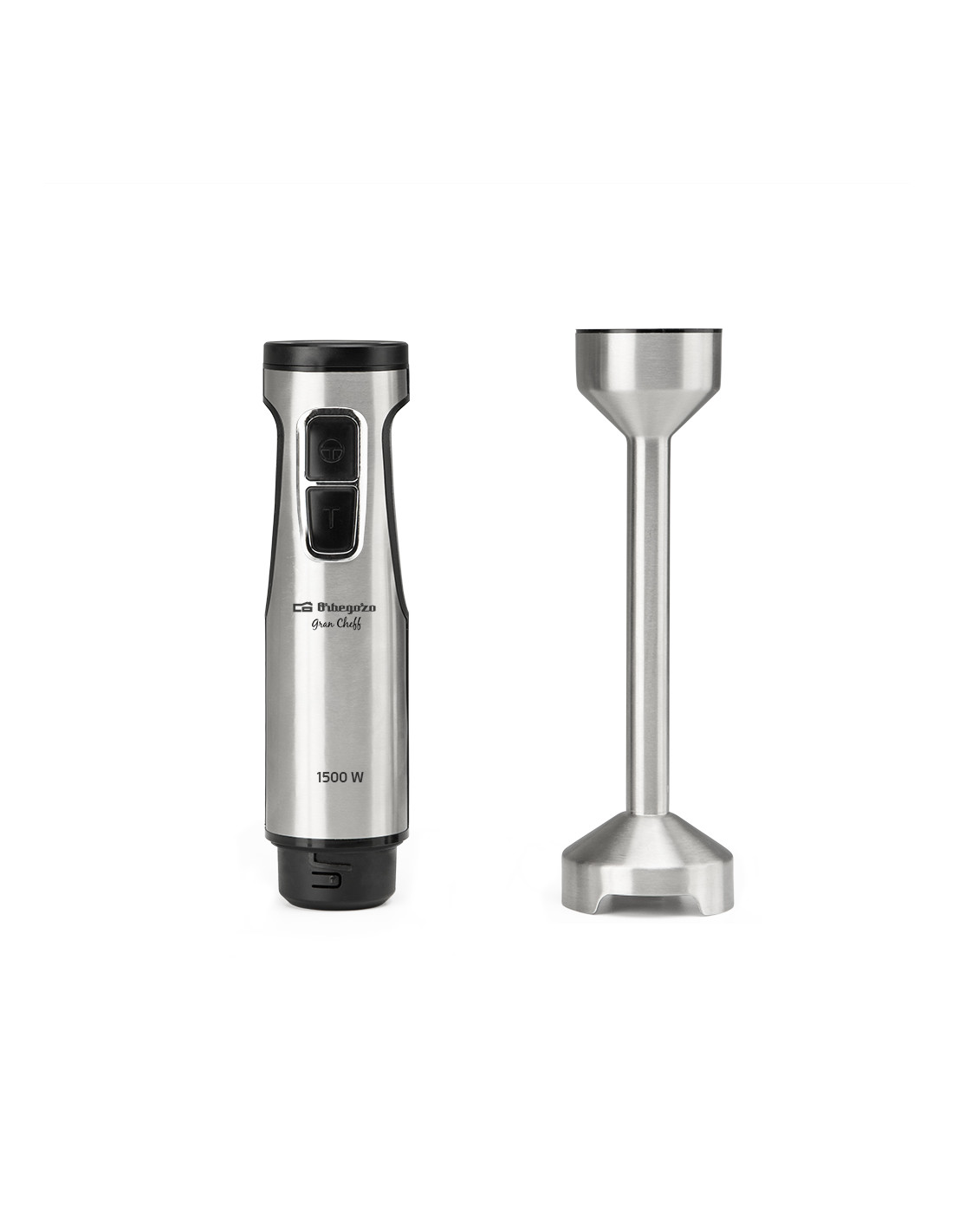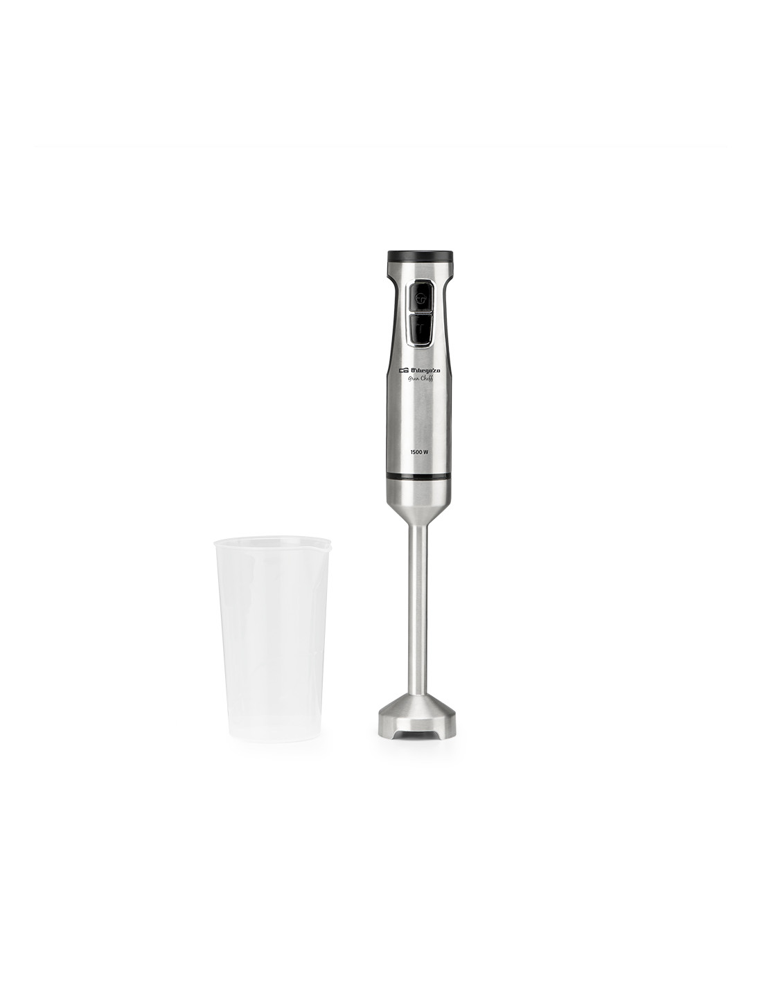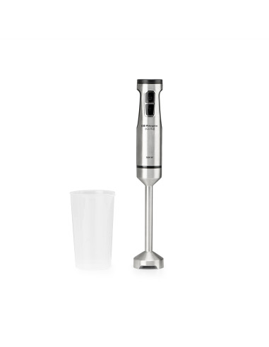 Batidora de mano con potente y silencioso motor de 1500 W de potencia. Su hoja de acero inoxidable permitirá triturar y picar todo tipo de alimentos con la máxima garantía. Además de incorporar un práctico vaso mezclador de 600 ml con tapa. En la parte superior de su mango ergonómico se encuentra el selector de velocidad con el cual podrás elegir la más adecuada para la textura deseada de los alimentos.