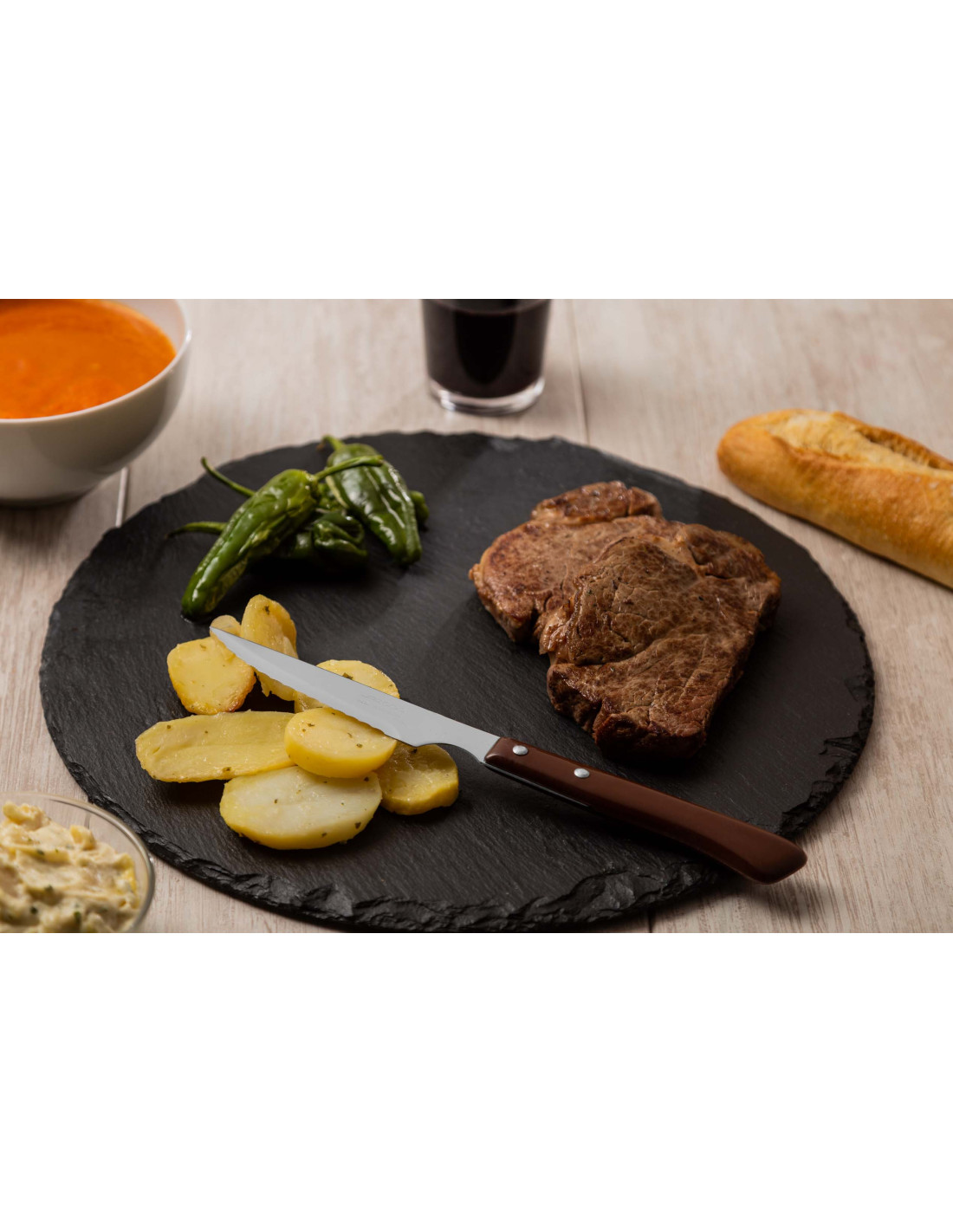 La hoja esta fabricada con acero inoxidable martensítico, rico en cromo que la hace muy resistente a la corrosión.