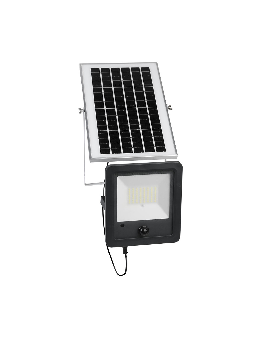 Foco led solar. Ideal para iluminar sitios sin electricidad, como patios, naves, etc... Con sensor de movimiento, para que no se gaste la batería. Incluye mando a distancia y kit de montaje.