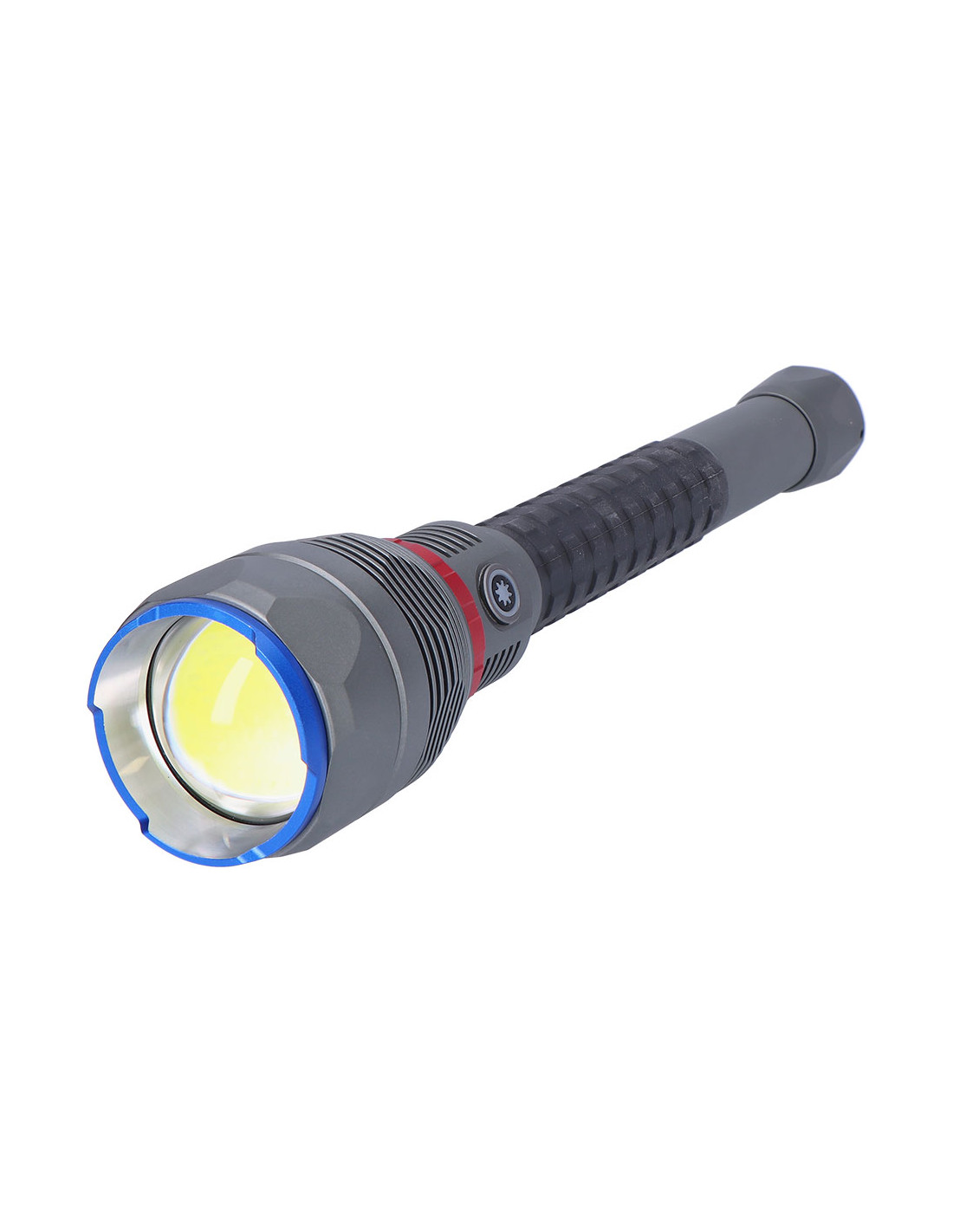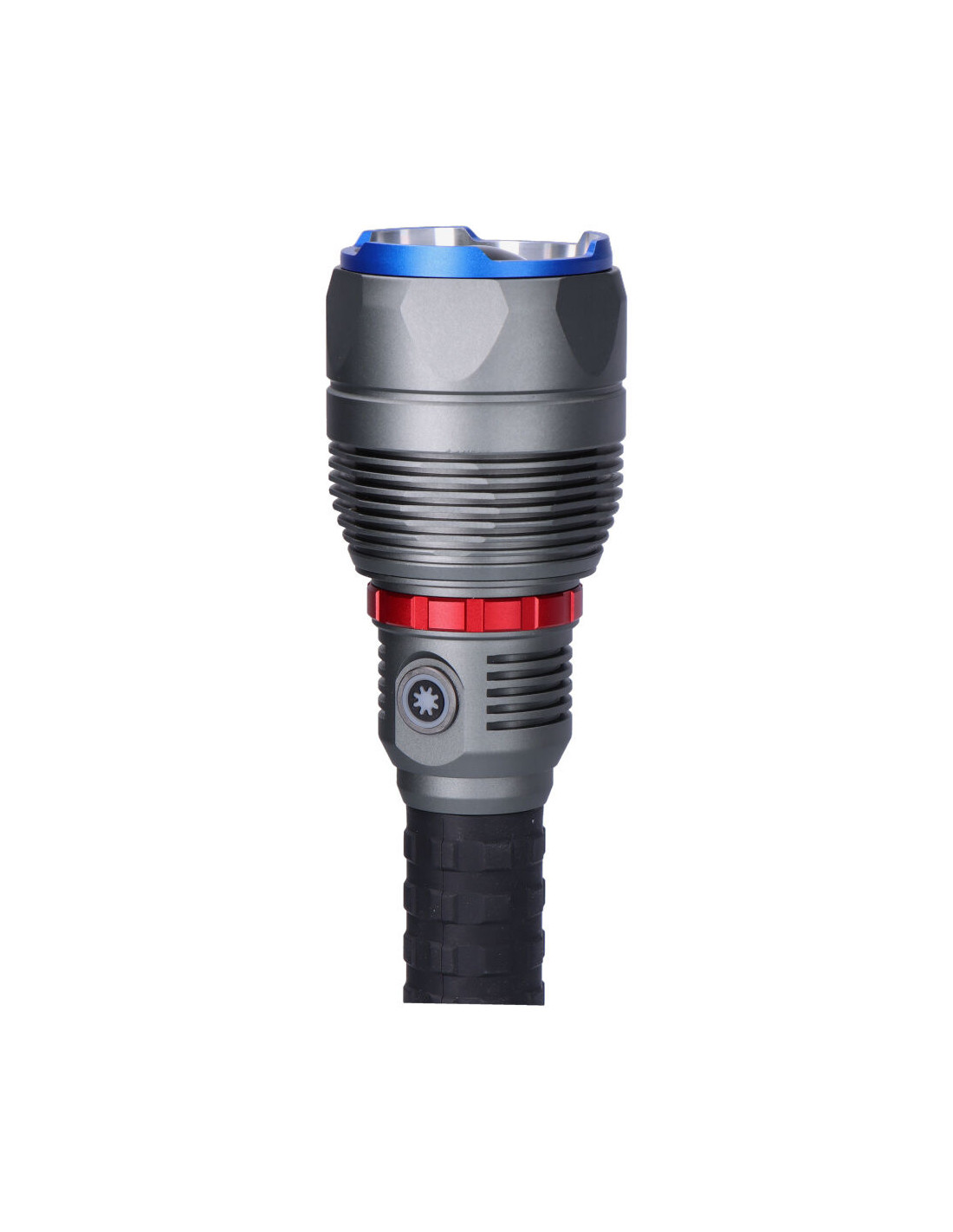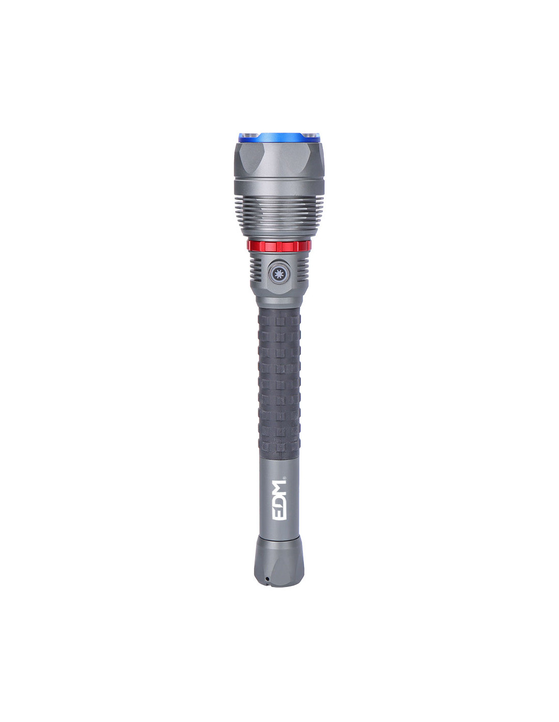 Linterna de gran alcance led, ideal para campo, caza, pesca, etc... Cuenta con una antinomia de hasta 20Hrs. Cuenta con luz estroboscópica (Flash), con función power bank para recargar tu móvil e impermeable IP67. Cuenta con 4 niveles de potencia: Turbo 18000lm (30S)/10000lm/50000lm/500lm. Tiempo de carga de 9H con indicador de carga.